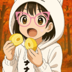 ナナミン(ナレーション風):むか〜しむかし、山のふもとにナナミンという女の子いました〜🍂その日は風が冷たくて、ナナミンは落ち葉を集めて”ほくほく焼き芋”を作っていました〜✨🍠
