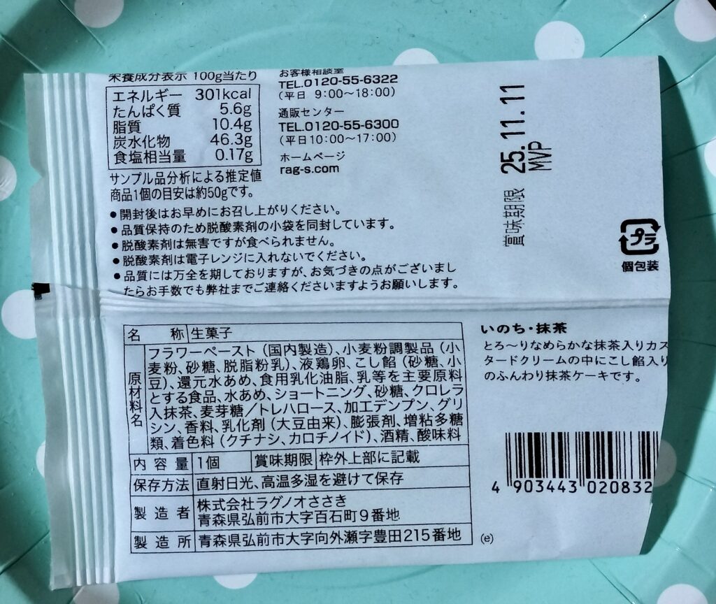 - ラグノオの『いのち(抹茶)』のカロリーは❓1個あたりのカロリーや賞味期限・原材料まとめ