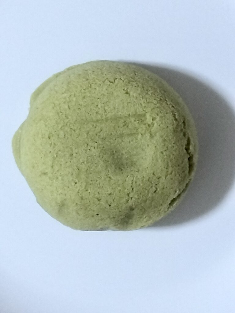 生地は指で触ると“ぽふっ”って軽い感じで見た目の緑色は少し濃いめで、しっとり感が伝わってくるよ〜😆