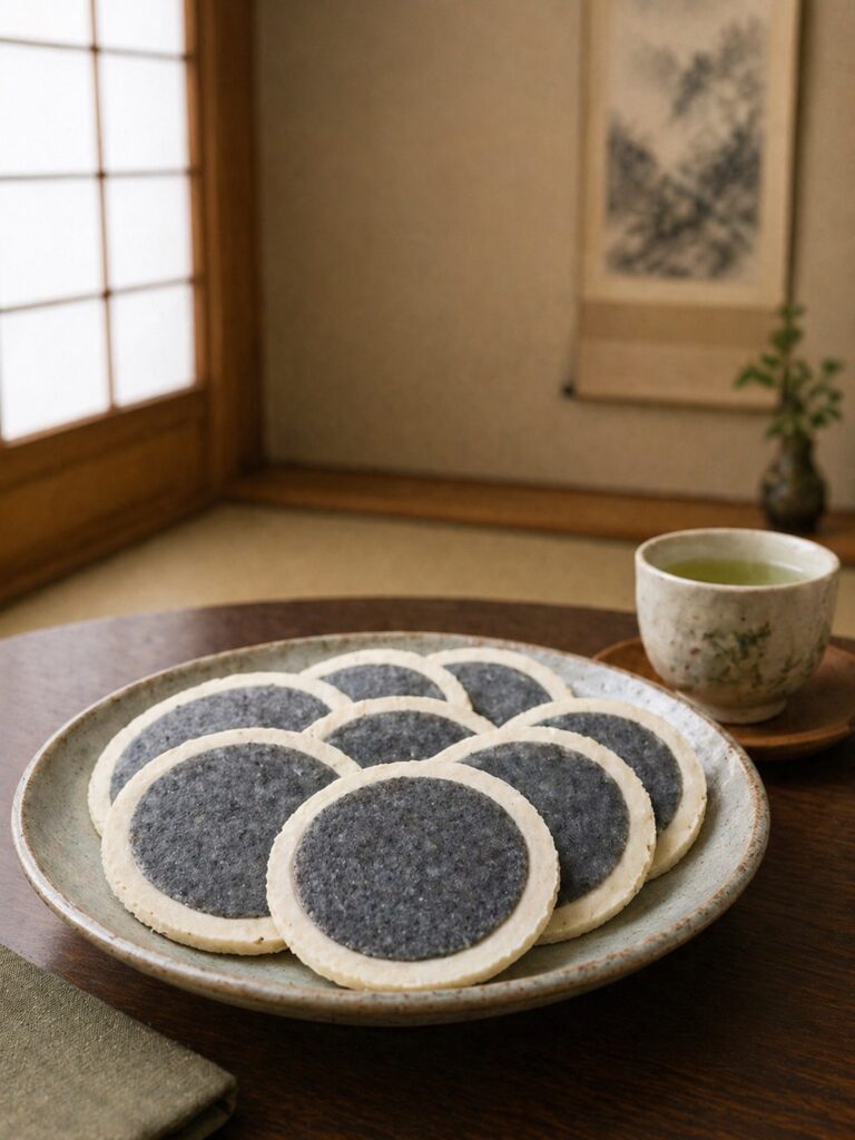 シンプルな生地に黒ごまたっぷり塗り込み、昔ながらの味わいが特徴で、どこか懐かしさを感じる素朴なお菓子です。