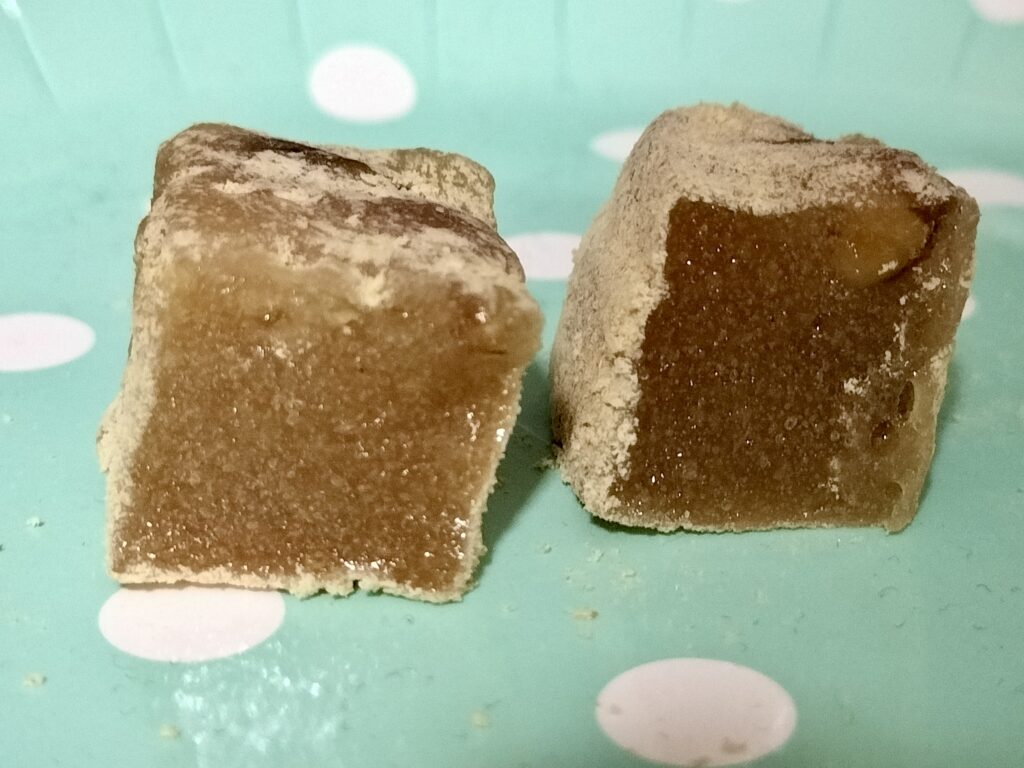 個包装を開けると、「さらっ」っとした粉の感触があり、きな粉餅らしい落ち着いた雰囲気があります。